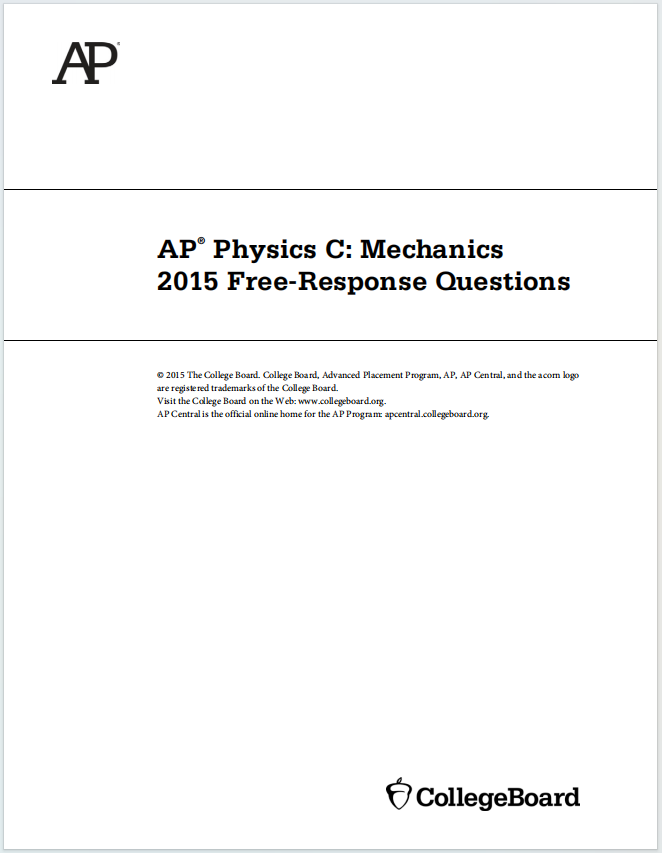 这是 AP Physics C: Mechanics 2015 Free-Response Questions (FRQs) 的试卷,由 College Board 发布。这份文件包含 2015 年 AP Physics C: Mechanics 自由回答题(FRQs),是备考 AP 物理 C 力学部分的重要资源之一。以下是对这份文件的解析,以及如何利用 2015 FRQs 高效备考 AP Physics C: Mechanics 的策略。
