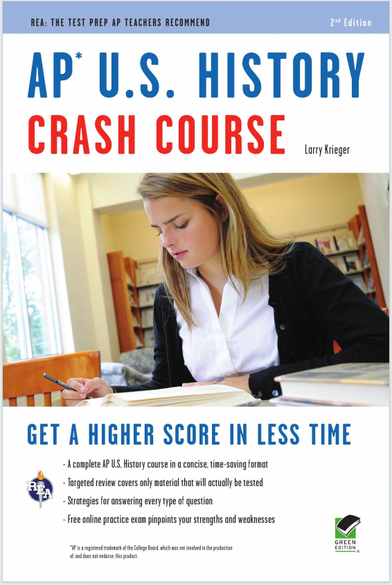 这是 《AP U.S. History Crash Course》 教材,由 Larry Krieger 编写。这本书是专为准备 AP 美国历史(APUSH)考试的学生设计的快速复习指南,出版方为 REA (Research & Education Association)。它以简洁、高效的方式帮助学生在短时间内掌握考试的核心内容,是备考冲刺阶段的热门选择。