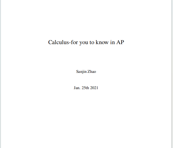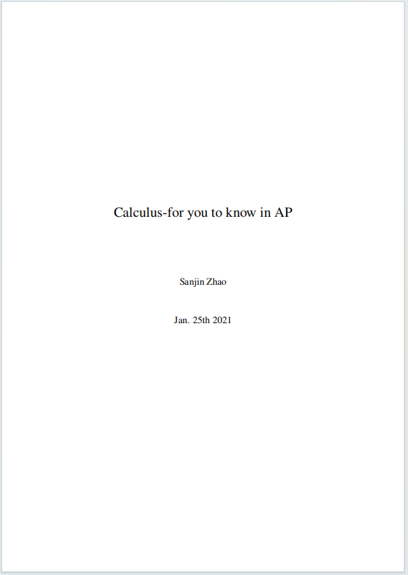 这本书 《Calculus - For You to Know in AP》 是由 Sanjin Zhao 编写的一本针对 AP微积分课程 的学习指南。它的目标是帮助学生掌握 AP 微积分考试所需的核心知识点和技能,提供简洁、直接的内容以支持备考。以下是关于这本书的详细分析: