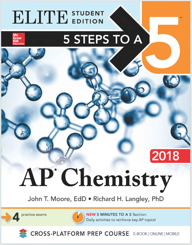 这本书是 《5 Steps to a 5: AP Chemistry (Elite Student Edition)》,由 John T. Moore, EdD 和 Richard H. Langley, PhD 合著,出版方是 McGraw Hill Education。这是一本专为准备 AP 化学考试的学生设计的备考指南,提供了系统的学习计划、清晰的知识点讲解以及丰富的模拟试题,帮助学生在考试中取得高分。