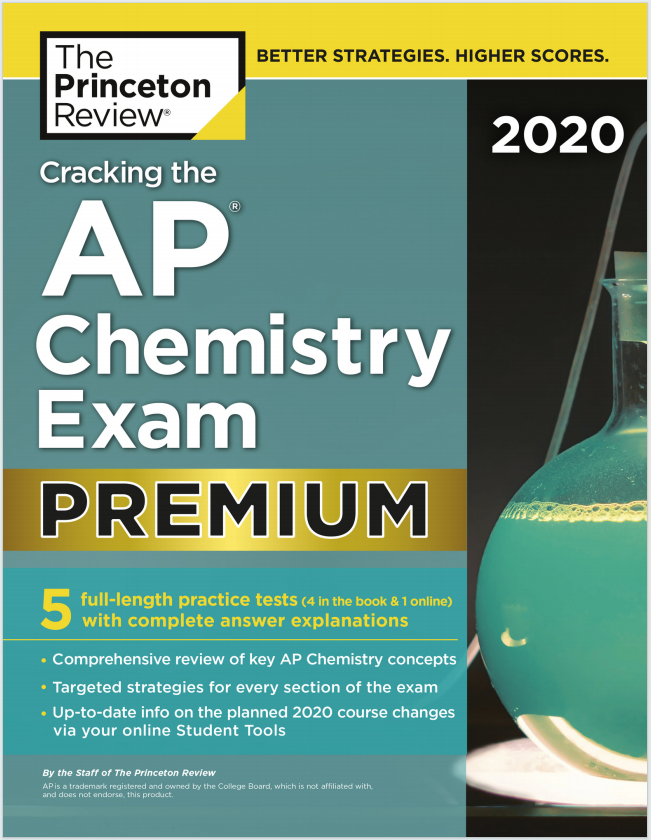 这本书是 《Cracking the AP Chemistry Exam Premium Edition, 2020》,由 The Princeton Review 出版。作为 AP 化学备考的热门选择,这本书不仅提供了全面的考试内容复习,还包含多个全真模拟考试和实用的应试策略,帮助学生在考试中取得高分。