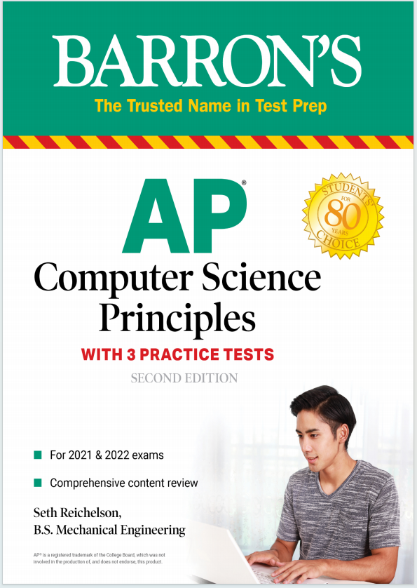 这是 《Barron's AP Computer Science Principles: With 3 Practice Tests (Second Edition)》,由 Seth Reichelson 编写。该书专为备考 AP Computer Science Principles 的学生设计,是一款全面的复习指南,涵盖了课程的核心内容,并提供了丰富的练习题和模拟考试。
