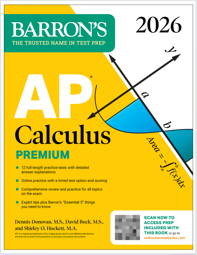 这是 Barron's 的 《AP Calculus Premium 2026》,一本专为准备 AP 微积分考试(AB 和 BC 课程)设计的备考书。以下是关于这本书的详细信息: