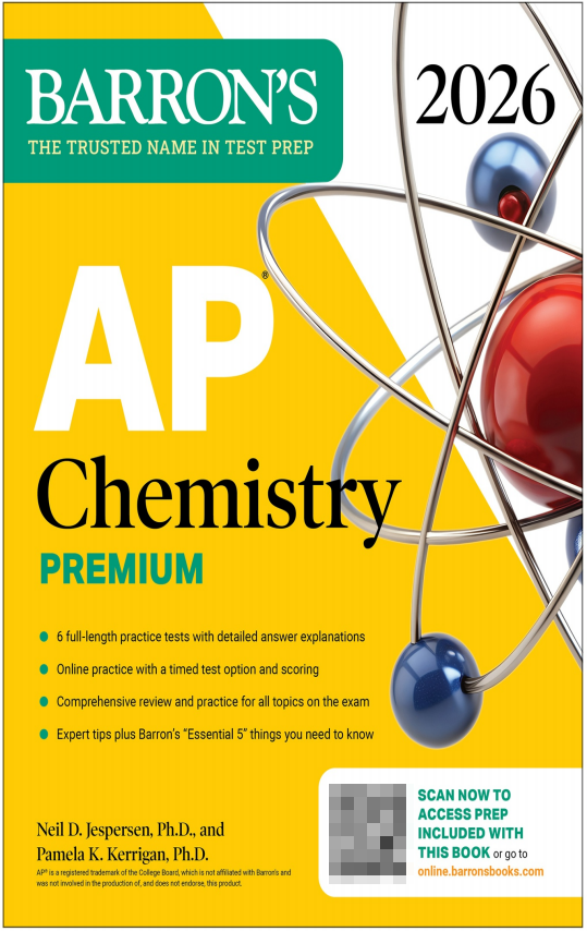 这是 Barron's 的 《AP Chemistry Premium 2026》,专为准备 AP 化学考试的学生设计的一本综合复习和备考书籍。以下是关于这本书的详细介绍: