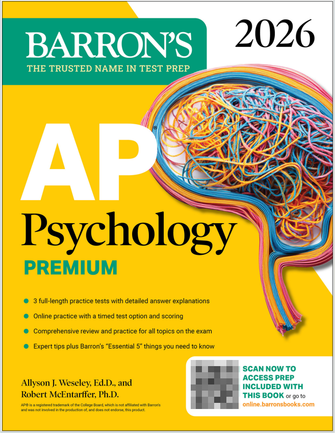 这是 Barron's 的 《AP Psychology Premium 2026》,专为准备 AP 心理学考试的学生设计的一本全面复习与备考指南。以下是关于这本书的详细介绍: