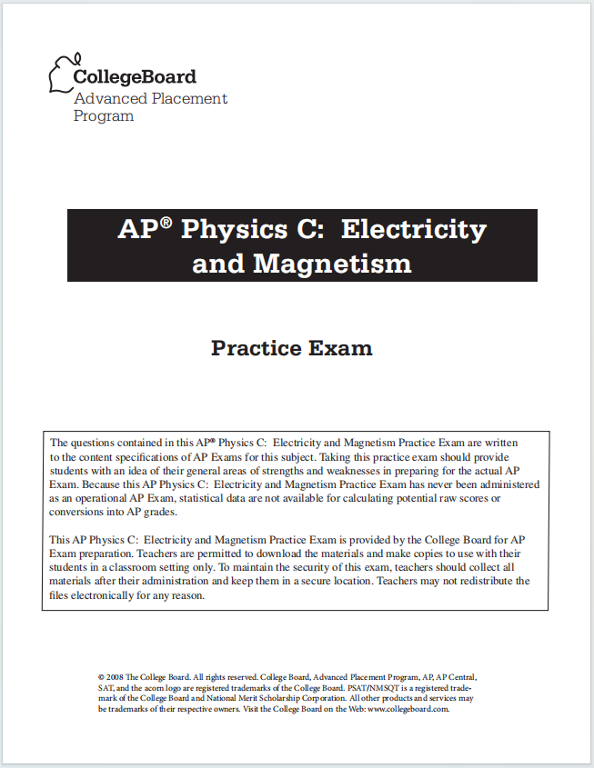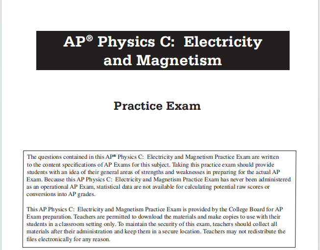 这是一份由AP考试的官方机构——美国大学理事会直接发布的AP物理C:电磁学模拟考试题。以下是对这份文件的全面详细介绍:
