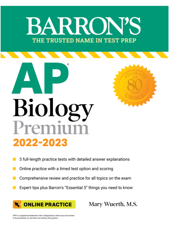 这本《AP Biology Premium, 2022-2023: 5 Practice Tests + Comprehensive Review + Online Practice》是由 Mary Wuerth 编写、Barron’s Educational Series(隶属于 Kaplan, Inc.)出版的 AP 生物学备考教材。以下是关于这本书的全面详细介绍: