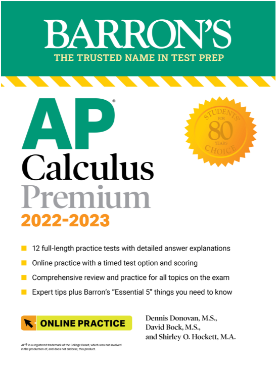 这是一本由Barron's(巴朗)出版的 AP Calculus 备考指南,全称为:AP Calculus Premium, 2022–2023: 12 Practice Tests + Comprehensive Review + Online Practice