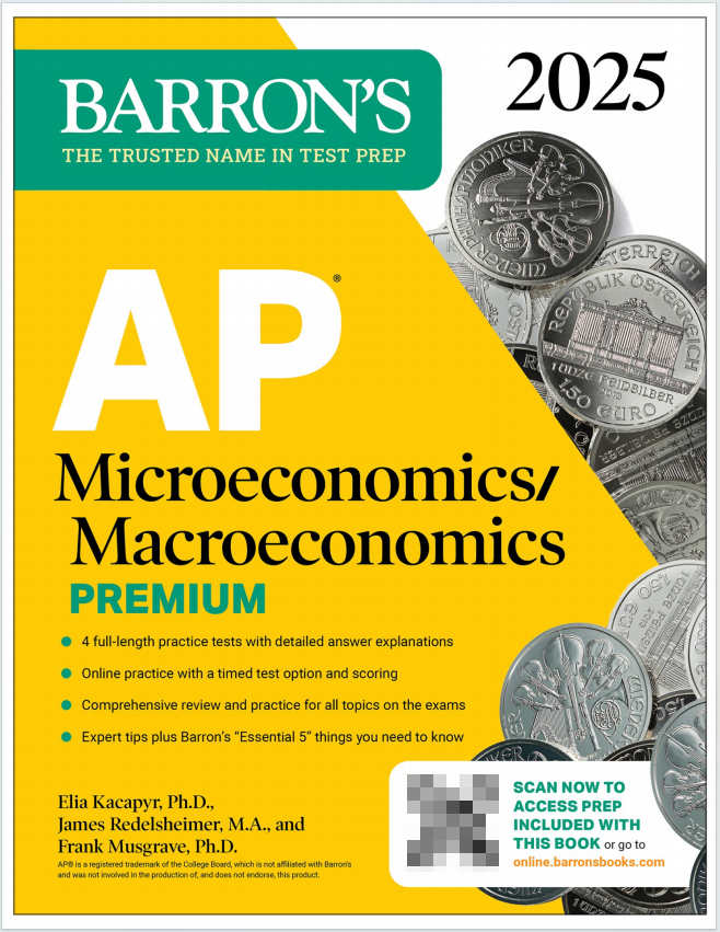 《巴朗AP微观经济学与宏观经济学(2025年版)》是由弗兰克·马斯格雷夫(Frank Musgrave)等合著的权威备考教材,专为准备参加美国大学预修课程(AP)微观经济学与宏观经济学考试的学生设计。以下是本书的全面详细介绍: